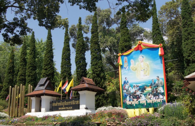 Im Anschluss geht's weiter zum nahe gelegenen königlichen Winterpalast namens "Bhuping Palace". Die weitläufige Anlage wirft sofort die Frage auf: zu Fuß oder per Golfcart? Wir schonen unsere Füße und lassen uns mit dem Golfcart durch die Anlage fahren - hier residiert man wahrhaft königlich. Viel Grün, schön angelegte Gärten und Teiche und der eine oder andere kleine Tempel: der winterliche Zufluchtsort des thailändischen Königs ist wahrhaftig einen Besuch wert!