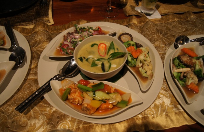 In Chiang Mai wollten wir uns ein thailändisches Essen der besonderen Art in einem tollen Ambiente gönnen - und wurden fündig: Das auf thailändische Küche spezialisierte, stilvoll eingerichtete Restaurant La Grand Lanna ist angeschlossen an das wunderschöne Luxus-Resort The Dhara Dhevi Chiang Mai. Das auf mehreren Ebenen inmitten von Teichen angelegte Restaurant bietet Thai-Küche vom Feinsten und verwöhnte unsere Gaumen mit tollen asiatischen Kompositionen. Besonders empfehlenswert war das Degustationsmenü "La Grand Lanna Signature" mit vielen kulinarischen Facetten der inländischen Küche. Das teilweise fischbetonte Menü kann auch nur mit Fleisch bestellt werden. Wer es nicht so ausladend mag, ist bei den pikanten Curries sehr gut aufgehoben. Und auch Vegetarier finden hier mit Sicherheit eine leckere Alternative.