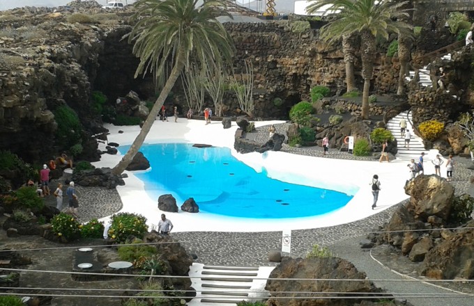 Das schönste Gesamtkunstwerk sind die Jameos del Agua, ein einzigartiger Komplex aus Höhlensee, Grotten und einem elegant geschwungenen Pool, umrahmt von subtropischer Pflanzenpracht. Im Casa de los Volcanes wird über Vulkanismus informiert. Unbedingt sehenswert ist die Cueva de los Verdes - ein vor 5000 Jahren durch den Vulkan La Corona gebildeter Tunnel mit 16 Lavablasen - dank effektvoller Beleuchtung und sphärischer Musik sehr beeindruckend! Der Jardin de Cactus im Osten der Insel bei Guatiza: ein alter Steinbruch wurde geschickt in einen Zaubergarten verwandelt. Hier präsentieren sich auf mehreren Terrassen über 10.000 stachelige Exemplare, zwischen bizarren Lavasäulen, kleinen Wassersäulen und Teichen, überragt von einer restaurierten Windmühle. Auch ungewöhnlich baute César Manrique in der Inselmitte bei Tahiche. In der Ödnis entdeckte er einen Feigenbaum, der mitten im Lavafeld Wurzeln geschlagen hatte. Hier ließ er auf fünf Lavablasen sein Vulkanhaus errichten. Schöner wohnen geht kaum mehr! Heute hat hier die Fundación César Manrique ihren Sitz. Der Mirador del Rio, jahrhundertelang ein strategischer Beobachtungsposten an der nördlichsten Inselspitze, wurde von Manrique zu einem viel besuchten Aussichtspunkt umgestaltet, der von außen kaum zu sehen ist. Der Künstler ließ das Restaurant mit riesigen Fenstern ganz in den Felsen versenken. Von dort aus und von der umlaufenden Terrasse hat man eine atemberaubende Aussicht auf die Insel La Graciosa.