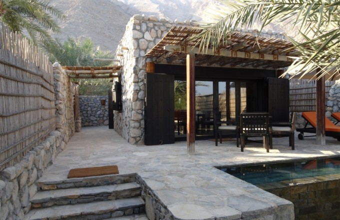 Die weitläufige Hotelanlage ist ein Traum! Im omanischen Stil erbaut, sind hier Natursteine und warme Holztöne angesagt. Die Verbindungswege innerhalb der Anlage bestehen aus weichem Sand. Man bewegt sich zu Fuß oder mit dem Fahrrad, welches zur Ausstattung jeder Villa gehört. Die Villen selbst sind einfach himmlisch. Geräumig und mit vielen Besonderheiten, die so richtig Spaß bereiten. Am Eingang stehen Bottich & Kelle, um die sandigen Füße zu säubern. Daneben gibt es einen Krug, in dem Nachrichten hinterlassen werden können. Absolute Highlights sind der kleine Pool, der eigene Weinkühlschrank und die zur Unterkunft dazugehörende Relax-Zone aus Stein und Holz.