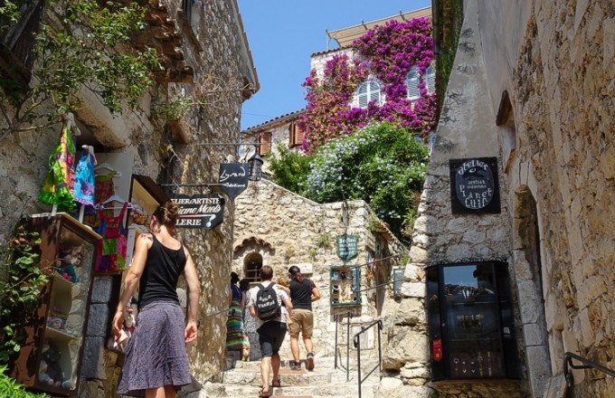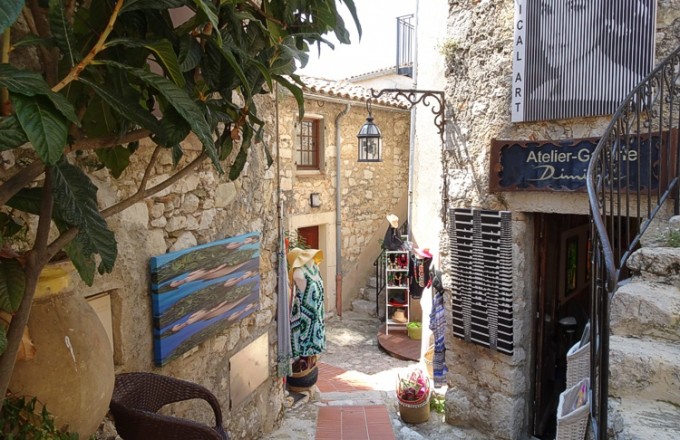 Nach so viel Glamour steht uns der Sinn nach Entschleunigung – und unser nächstes, nur wenige Kilometer entferntes Ziel ist der perfekte Ort dafür: Èze. Dieses wunderschöne historische Bergdorf liegt an der kurvenreichen Küstenstraße Moyenne Corniche und ist am besten von einem Parkplatz am Fuß des Berges per Pedes erreichbar. Nach einem kurzen Spaziergang bergauf erreichen wir den festungsartigen Ortskern – und sind sofort vom Charme der malerischen Häuser und verwinkelten Gässchen gefangen! Hier geht es ständig bergauf und bergab, in den autofreien Gässchen reihen sich Ateliers, Galerien, Kunsthandwerksgeschäfte, Cafés und Restaurants aneinander. Die pittoreske Szenerie scheint einem Bilderbuch zu entspringen. Dazu kommt ein traumhafter Ausblick auf die wunderschöne Landschaft, in die Èze eingebettet ist. Würde uns die Uhr nicht zum Weiterfahren ermahnen, könnten wir hier gut und gerne den ganzen Tag mit Entschleunigen verbringen.