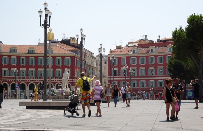 Weiter geht unsere Côte-d’Azur-Blitztour in die fünftgrößte Stadt Frankreichs: nach Nizza. Nach der Ruhe in Èze finden wir hier eine pulsierende Großstadt mit rund 350.000 Einwohnern vor. Unser Auto parken wir in einem Parkhaus in der Nähe des beeindruckenden Platzes Place Masséna, um von hier aus die Innenstadt mit ihren großen und kleinen Einkaufsstraßen zu Fuß zu erkunden. Vom Place Masséna erstreckt sich die Prachtstraße und gleichzeitig Haupteinkaufsstraße Avenue Jean Médecin in nördlicher Richtung. Im Einkaufszentrum Niceetoile legen wir eine kurze Verschnaufpause ein und genehmigen uns einen Mittagssnack. Wir gehen zurück zum Place Masséna und biegen dort rechts ab in den schönen Grüngürtel Promenade du Paillon mit Wasserspielen und dem Freilichttheater Théâtre de Verdure. Dieser neue Stadtpark verbindet das Museum für moderne und zeitgenössische Kunst und das Nationaltheater mit der Uferstraße Promenade des Anglais und dem dahinter liegenden Strand und lädt zum Schlendern und Verweilen ein. Nach einer Runde über den feinen weißen Sandstrand gehen wir zurück zum Auto.