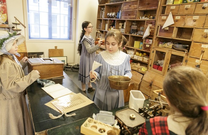 In der obersten Ebene des Museums, der Ebene 3, sind historische Spielräume untergebracht: ein Kolonialwarenladen, eine historische Drogerie und die Urgroßelternküche. Hier kann nach Herzenslust nachgespielt werden, wie man vor über 100 Jahren eingekauft, abgewogen, gekocht und gegessen hat. Weitere Kreativwerkstätten wie ein Malatelier, ein Computerlabor und eine Radiowerkstatt ergänzen das Angebot. In der Radiowerkstatt nehmen wir mit unseren Kindern ein Lied auf: Die Museumsmitarbeiterin bedient dazu ein Laptop und lässt uns kurze Interviews miteinander führen, die sie dann in ein Lied einbaut – eine echt witzige Idee. Der Clou: Als Erinnerung schickt uns die Mitarbeiterin im Anschluss eine Kopie "unseres" Liedes per E-Mail zu.