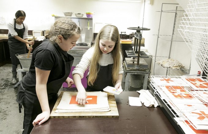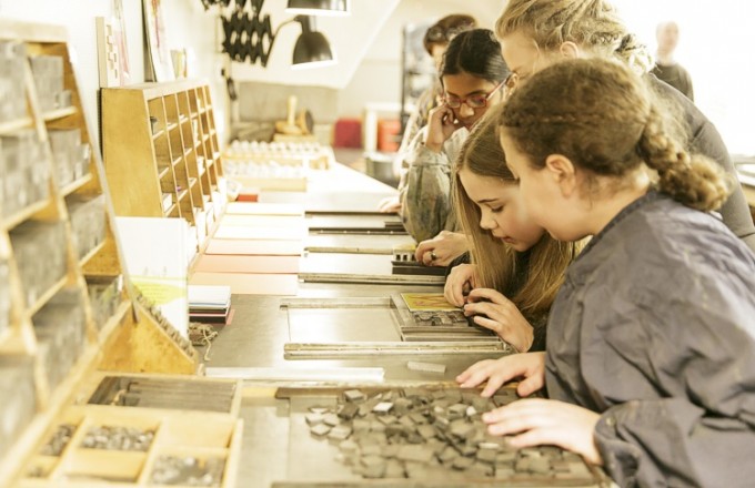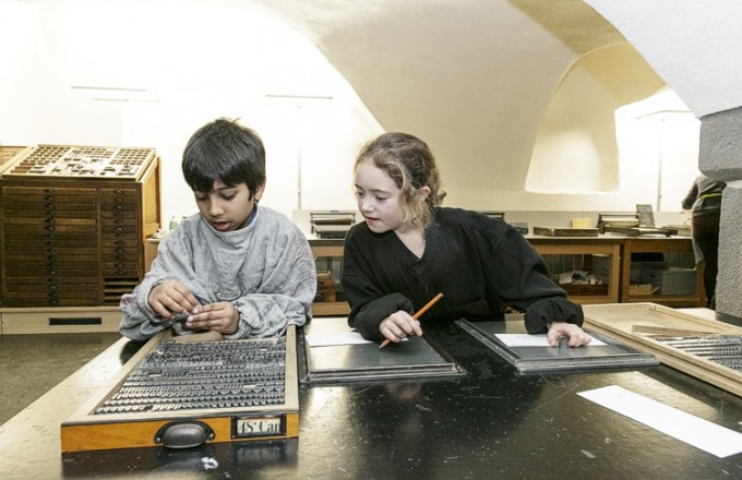 Die Ebene 0 im Gewölbekeller des Gebäudes beherbergt eine große Druckwerkstatt, die mit Originalteilen aus alten Frankfurter Druckereien ausgestattet ist. Die Kinder können hier u.a. mechanische Druckpressen und Setzschränke, gefüllt mit vielen verschiedenen Schriften, entdecken und live daran mitwirken, wenn kurze, selbstgestaltete Texte gesetzt und gedruckt werden. Zudem werden hier Papiere geschöpft; dabei werden in ehemaligen zinkenen Waschzubern verschiedene Papierbreie selbst angesetzt – ein großer Spaß für die Kinder, der sehr individuelle Papiere hervorbringt.