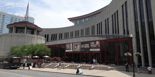 Im Anschluss machen wir den logischen nächsten Schritt und besuchen die beeindruckende Country Music Hall of Fame im Zentrum von Nashville. Dieses beeindruckende Bauwerk wurde 2001 im Zentrum von Nashville neu eröffnet und beherbergt auf drei Etagen die Erinnerungen an die größten US-Countrystars von den Anfängen bis in die 2010er Jahre mit dem alles beherrschenden New Country. Der Eintritt ins Museum kostet 25 USD, mit Audio Guide 27 USD. Zusätzlich kann man eine Führung durch das berühmte Aufnahmestudio Studio B des Musiklabels RCA buchen, das mit einem Shuttlebus angefahren wird. Wir konzentrieren uns jedoch auf die Country Music Hall of Fame, für die wir uns rund 1,5 bis 2 Stunden Zeit nehmen – es gibt eine Menge zu entdecken, und der Souvenirshop ist auch nicht zu verachten!
