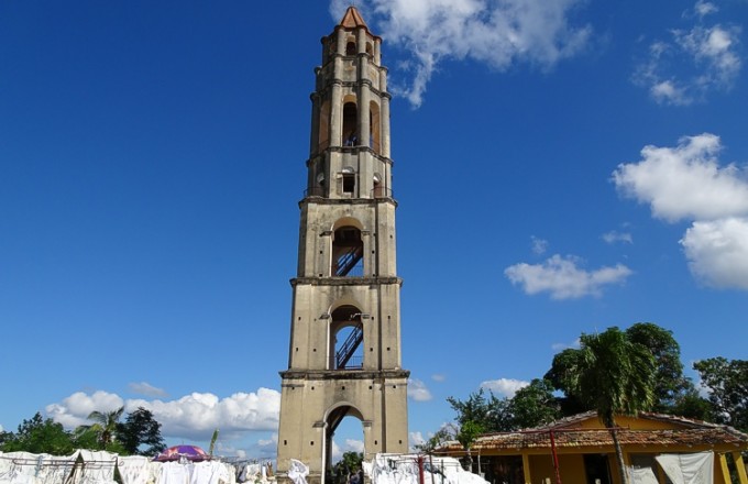 Am nächsten Tag erkunden wir die Region. Auch heute mieten wir uns ein Taxi, um das "Sugar Mill Valley" bzw. "Valle de los Ingenios" zu besuchen. Unser erster Stopp ist der Aussichtspunkt "Mirador del Valle de los Ingenios" mit Snackbar und Canopy (Zipline). Vier Fahrten auf vier unterschiedlichen Routen kosten hier 10 CUC. Der Blick von hier oben ist atemberaubend. Ziel Nummer 2 ist eine ehemalige Zuckerfabrik, die "San Isidro de los Destiladeros", die in den frühen 1830er Jahren erbaut wurde. Ruinen und diverse Fragmente kann man hier durchaus noch erkennen: vom zerfallenen Farmhaus über den Glockenturm bis hin zu Sklavenunterkünften und Zisternen. Eintritt: 1 CUC (ca. 0,85 Euro) pro Person. Unsere Führung ist kostenlos, ein Trinkgeld für die in gutem Englisch sprechenden Guides ist Ehrensache.