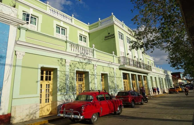 Das Iberostar Grand Hotel Trinidad ist definitiv die schönste Unterkunft im Ort mit viel Charme und Flair, ein architektonisches Highlight. Das Hotel ist von der Größe sehr überschaubar - mit nur 36 Zimmern. Unser Zuhause für drei Nächte ist ein Eckzimmer, groß und gut ausgestattet. Die Terrasse ist grandios mit Blick auf das Treiben im davor liegenden Park mitsamt Kirche. 5 Sterne Landeskategorie hat das Hotel, wir würden hier wirklich gute 4 Sterne vergeben. Alles konzentriert sich auf Lobby, Bar und Restaurant, die drei Bereiche schließen direkt aneinander an. Manchmal wirkt alles ein wenig gedrängt, es fehlt hier ein Innenhof, ein Pool oder ähnliches. Das Essen in Bar und Restaurant schmeckt uns. Kleiner Nachteil: Die Zimmer zur Straße haben mit einem hohen Lärmpegel zu kämpfen - Kuba ist laut und feiert gerne bis mitten in die Nacht, daher: Ohrenstöpsel nicht vergessen! Wichtig: Gleich links neben dem Hotel gibt es Geldautomaten. Amerikanische Kreditkarten werden hier allerdings nicht akzeptiert.