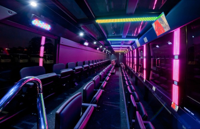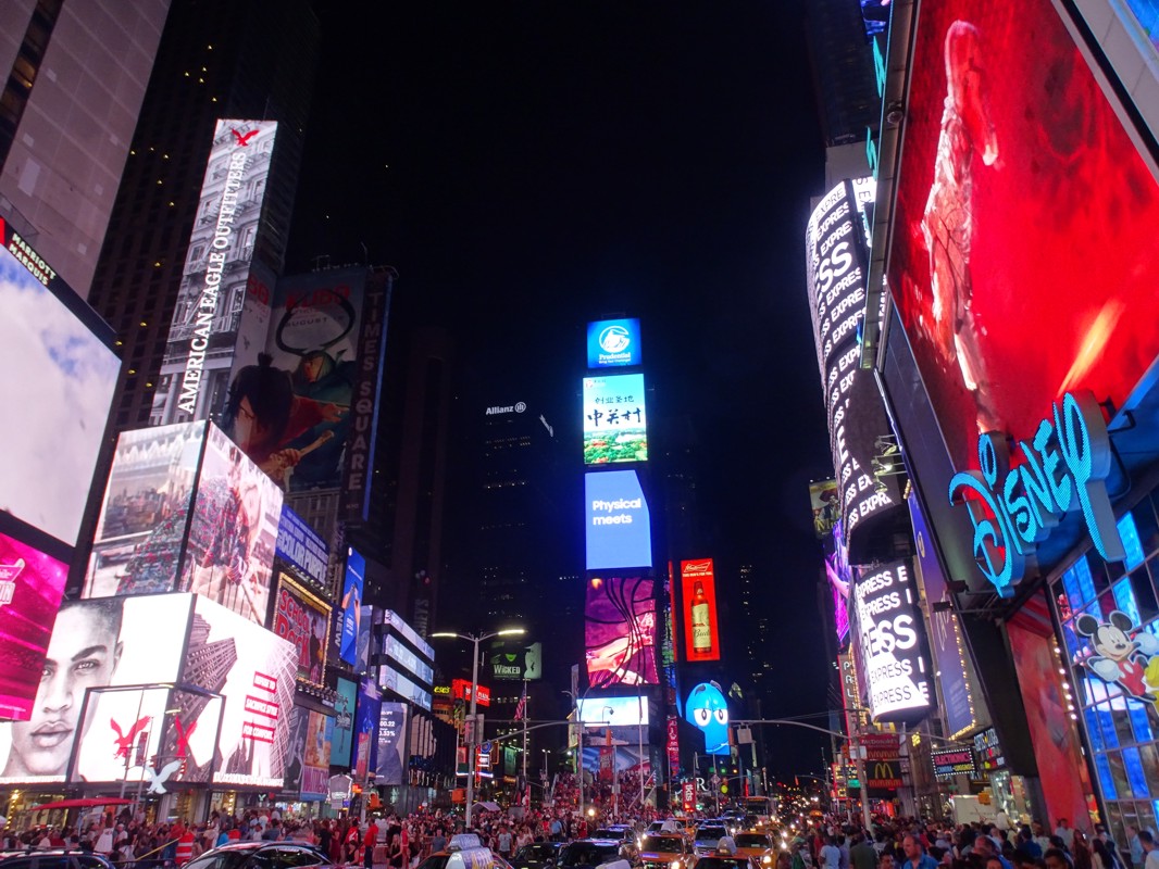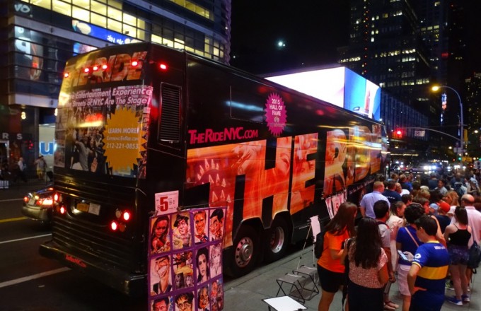 Wir sitzen in einem Bus in New York. Einem ganz besonderen Bus. Wohl eher eine mehrere Millionen Dollar teure rollende Theaterbühne mit 3000 LEDs und diversen Bildschirmen ist heute unser fahrbarer Untersatz. Die Inneneinrichtung flasht auf Anhieb. Wir sitzen 90 Grad nach links gedreht seitlich zur Fahrtrichtung vor riesigen Glasfenstern, die heute die Straße zur Bühne machen. Wir sind die Zuschauer. Unsere beiden Guides, die die Fahrt moderieren, sind vielmehr Entertainer und bringen die Stimmung sehr schnell zum Kochen. Die Tour führt uns durchs nächtliche Midtown Manhattan und den Times Square.